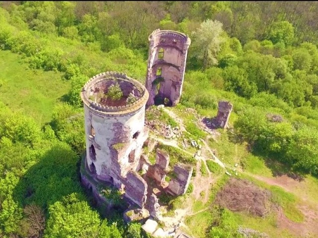 Дві круглі готичні зубчасті вежі на дні гігантського кратера – залишки старовинного Червоногородського замку, історія якого починається з IX сторіччя, коли тут існувало давньоруське поселення Чорлене містечко (пізніше його називали Червоногород, Червоногруд, Червоноград).