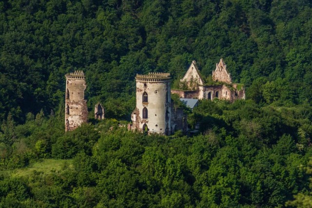 В 1351 році русько-литовські князі Коріатовичі (Корятовичі) збудували в Червоногороді дерев'яний замок для захисту від татар. На початку XVII століття королівський староста Микола Данилович спорудив на вигині річки Джурин новий кам'яний замок, згодом зруйнований турками. Мальовничі руїни послужили князю Каролю Понінському основою для зведення в 1870 році чудового готичного палацу (архітектор Юліан Захаревич).