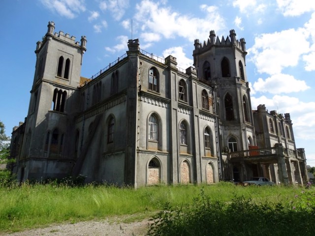 Палац із стрілчастими вікнами та іншими готичними елементами споруджений магнатом Адольфом Норбертом Еразмом Грохольським, якому в XVIII-XIX століттях належало Червоне.