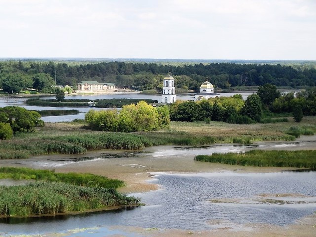 При створенні Канівського водосховища в 1972 році було затоплено кілька навколишніх сіл, на протилежному березі Дніпра збереглася напівзатоплена церква.