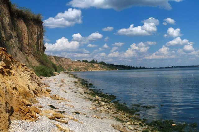З берега відкривається мальовничий вид на легендарний острів Березань (колишній острів Борисфен, він же легендарний Острів Буян).