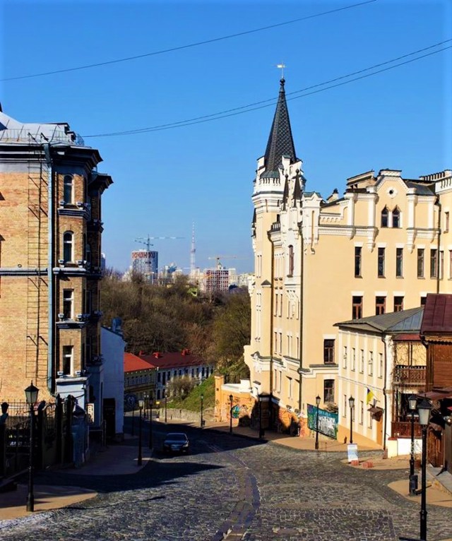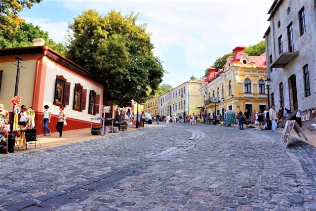 Мощена грубим каменем дорога круто звивається між старими одно-двоповерховими будинками. Це колоритне місце, що зберігає дух старого Києва, уподобане художниками та торговцями сувенірами, тут завжди багато туристів.