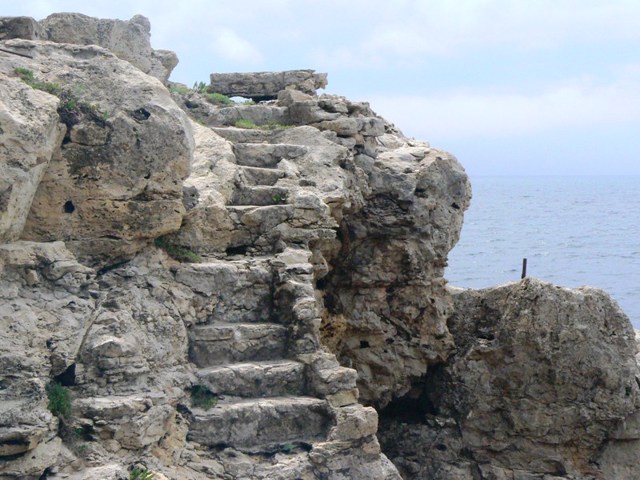 Висота скель досягає тут 30-40 метрів, берег рясніє різноманітними бухтами та гротами.