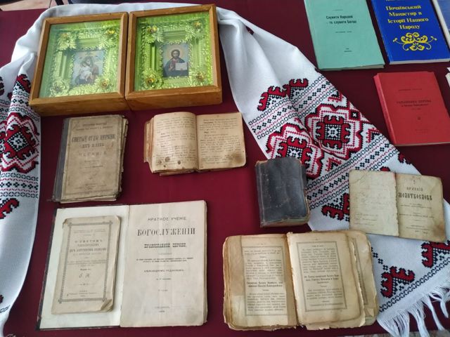 Експонується виставка робіт місцевого художника Миколи Ткачука: живопис, скульптура, різьблення по дереву.