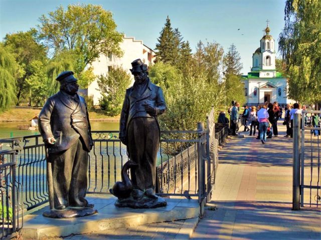 У 2009 році, до 200-річного ювілею письменника, на набережній було відкрито пам'ятник Гоголю заввишки близько трьох метрів. Він став основою скульптурного комплексу, присвяченого героям гоголівських творів: Івану Івановичу з Іваном Никифоровичем, Хлєстакову, ковалю Вакулі та Оксані, незрівнянній Солосі, Пузатому Пацюкові, свині.