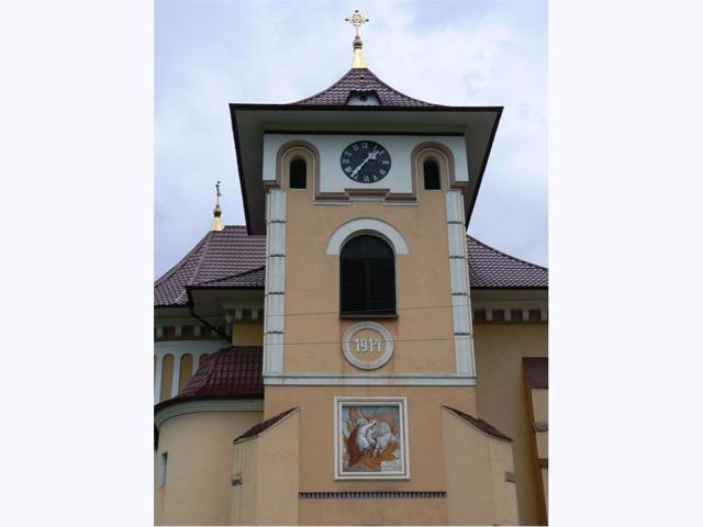 Збудована в 1914 році під керівництвом німецьких та чеських архітекторів у традиційних для Румунії архітектурних формах. На одній із веж встановлено годинник.