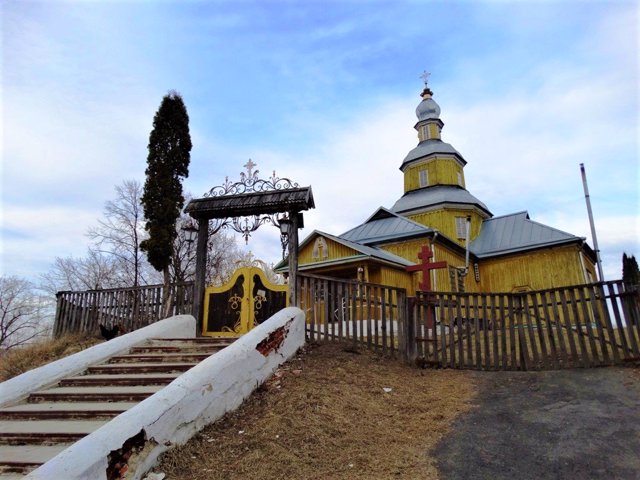 Миколаївська церква хрестова у плані, одноголова, пятисрубная. Пірамідальна форма органічно завершує силует пагорба.
