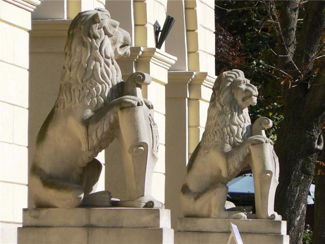 Львівська ратуша – домінанта площі Ринок, один із найвідоміших символів Львова. Головний вхід до будівлі стережуть два символічні леви, що тримають щити з гербом міста.