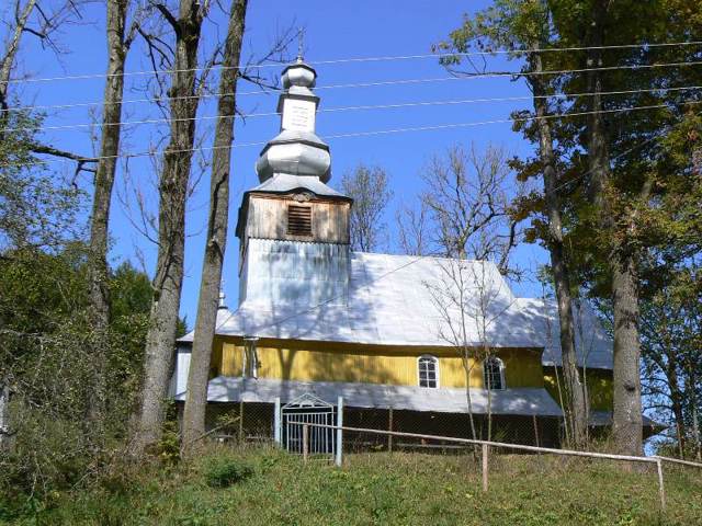 Належить до барокового типу дерев'яних церков. Виглядає дуже стрункою та витонченою. На жаль, враження дещо псує бляшане покриття.