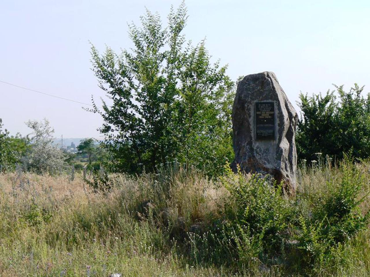Пам'ятник встановлений при вході до парку "Мар'їн гай". На гранітному камені розміщена табличка з написом: "На цьому місці 29 липня 1919 року був застрелений і похований Мойша-Я ...