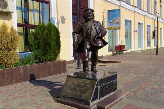Пам'ятник отцю Федору, персонажу роману "Дванадцять стільців" (1928 рік) Іллі Ільфа та Євгена Петрова, встановлено на 1-й платформі Південного залізничного вокзалу в Харкові.