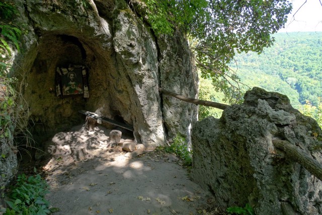 Невеликий грот вирубаний у травертиновій скелі над річкою Джурин. До Другої світової війни (за іншими даними, в кінці XIX століття) в печері жив чернець-самітник, який займався різьбленням по каменю. Частково збереглася вирізана відлюдником статуя Святого Онуфрія.