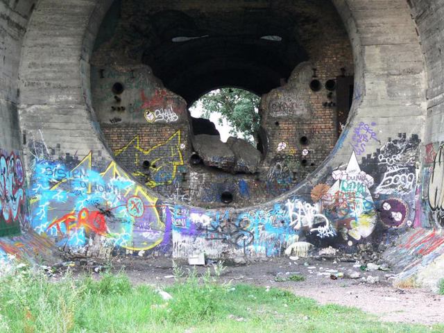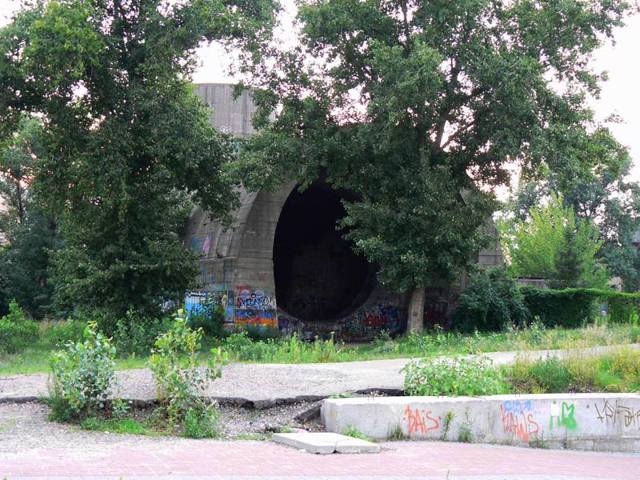 На поверхні землі біля берега Дніпра залишилася залізобетонна тунельно-кесонна секція, призначена для занурення у ґрунт та створення підземної робочої камери для роботи прохідників у насичених водою ґрунтах.