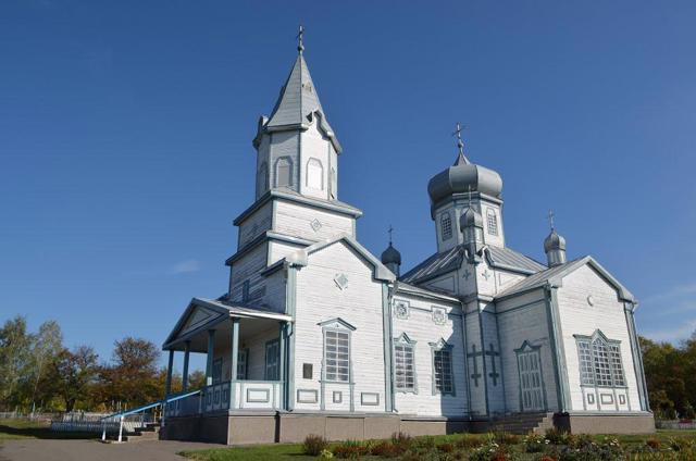 Храм зведений з дубових брусів за типовим синодальним проєктом, поширеним тоді на території Київської єпархії.