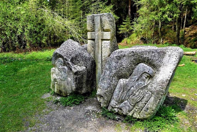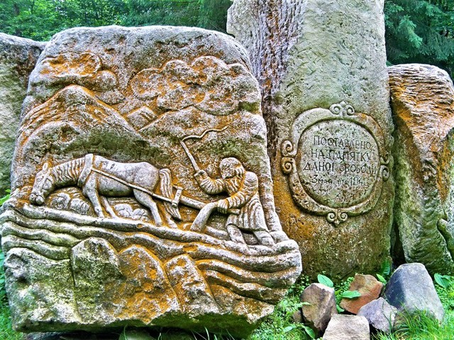 На стежці встановлені скульптурні композиції Дарія Грабаря.