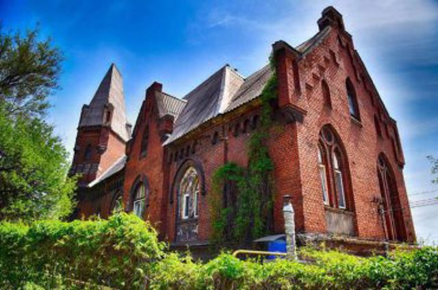 Невелика будівля в стилі неоготики, складена з червоної цегли, розташована в районі Слобідки. Відмінні риси архітектури: стрілчасті вікна, цегляні візерунки та прибудова у вигляді вежі середньовічного замку.