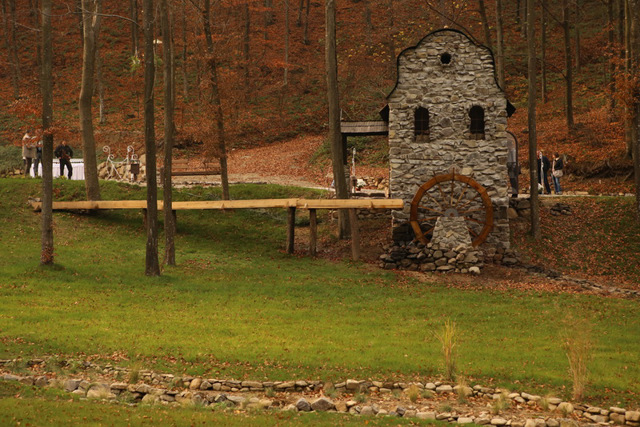 Вхідна брама парку, побудована на старовинних фундаментах будівлі XVIII століття, символізує портал між австро-угорською епохою Закарпаття та сучасною Україною.