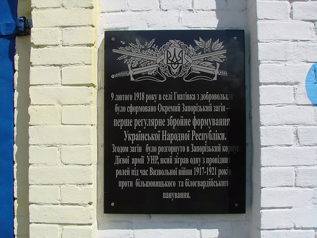 В 2013 році на стіні церкви було урочисто встановлено меморіальну дошку на згадку про історичну подію, що відбулася у Гнатівці 9 лютого 1918 року. Цього дня у Гнатівці, під керівництвом виконувача обов’язків військового міністра Олександра Жуківського, відбулося переформування всіх наявних військ в Окремий Запорізький загін – так було сформовано перше регулярне збройне формування Української Народної Республіки.
