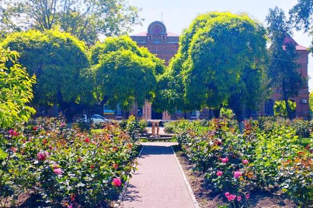 Перед корусом розкинувся великий сквер, де полюбляють відпочивати місцеві мешканці.