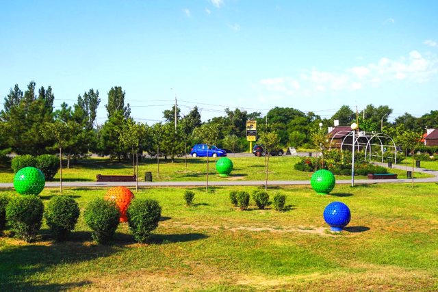 Відкрита озелена територія площею 4,5 гектари з елементами сучасного ландшафтного дизайну розташована поруч із каскадом фонтанів "Райдуга" на набережній Дніпра.
