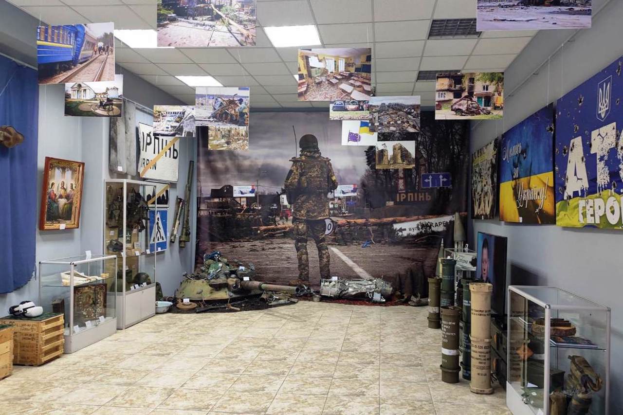 Окрема експозиція розповідає про події окупації Ірпеня російськими військами в лютому-березні 2022 року, коли будівля музею отримала пошкодження. Представлені докази злочинів армії росії, особисті речі окупантів, простріляні предмети побуту місцевих мешканців, понівечені ікони, гільзи, снаряди та фрагменти військової техніки.