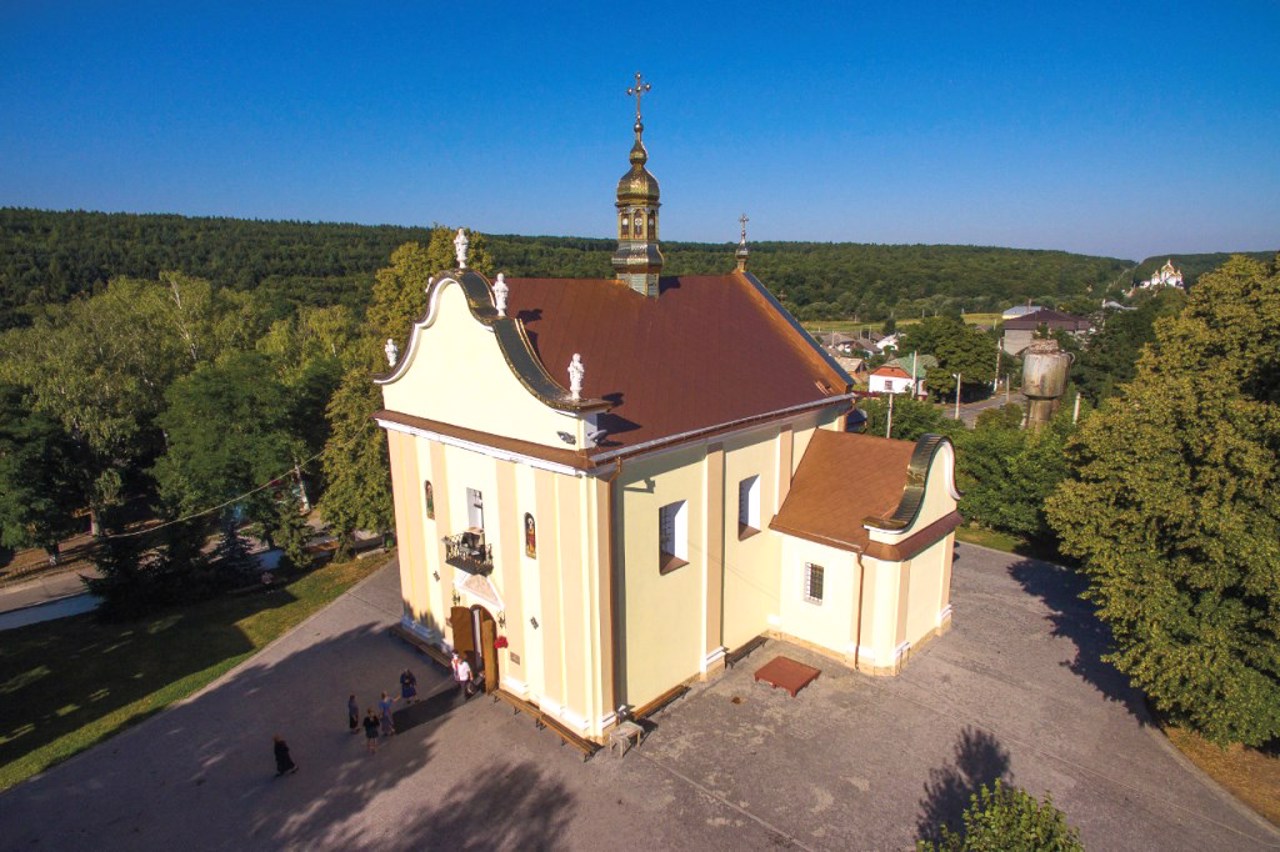Спочатку це був дерев'яний храм, названий на честь святого Іоанна Хрестителя. Тут встановили чудотворну ікону Божої Матері, а в 1740 році ще один образ – Розп'яття Ісуса Христа, яке львівський митрополит Атаназій Шептицький офіційно визнав чудотворним.