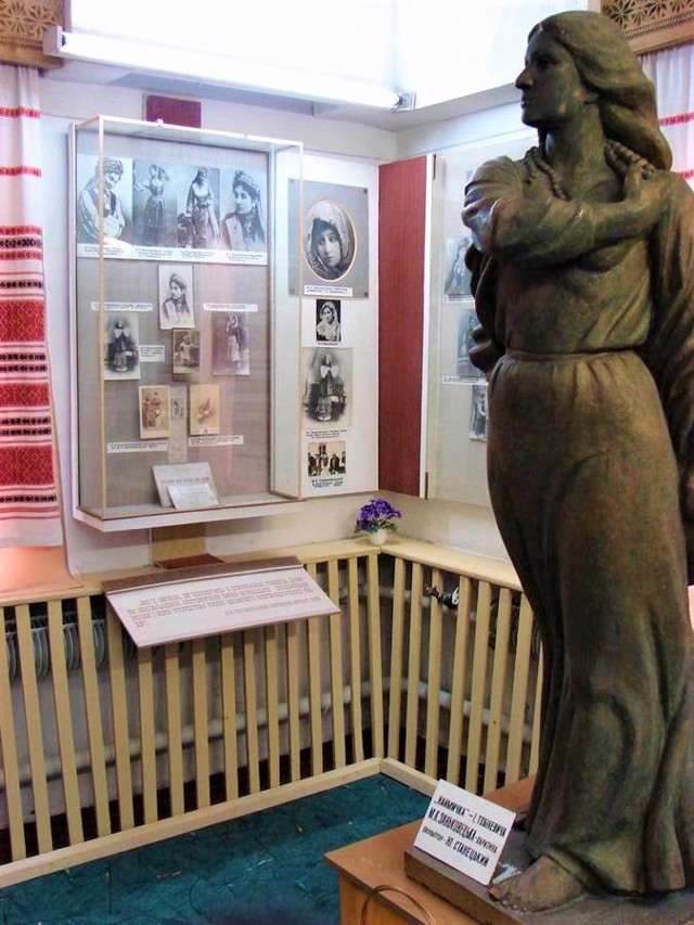 На подвір’ї музею встановлено пам’ятник Марії Заньковецькій.