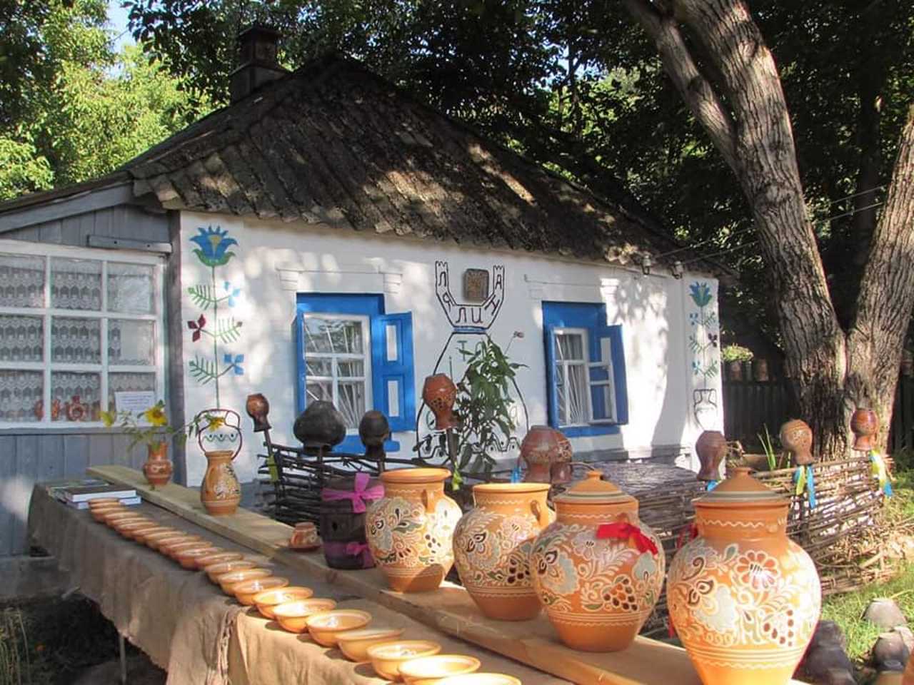 В одній із хат етносадиби представлена колекція горщиків з різних регонів, рогачі, а також традиційна піч, у якій готують страви. Також представлено інгредієнти, які додають до борщу у різних регіонах України.