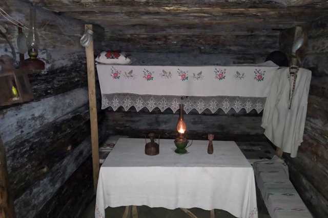 В експозиції представлені імпровізовані меблі, каганці, піч, друкарські машинки, побутові речі повстанців, світлини, оригінали та копії документів. Також відтворена мінікаплиця, одним з експонатів якої є "Молитовник українського народу" (1947 рік ...