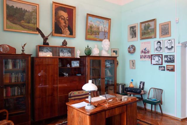 Особливий інтерес становлять відтворені інтер'єри робочих кабінетів з особистими речами видатних діячів української культури. Серед них мемтріальні кабінети кінорежисера Олександра Довженка, письменників Юрія Яновського, Михайла Стельмаха, Івана Микитенка, поета Андрія Малишка, художника Миколи Глущенка.