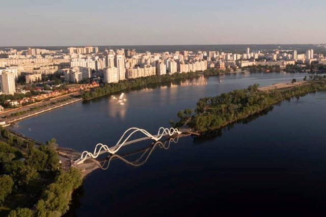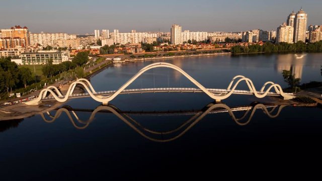 Пішохідний міст із парку "Наталка" на Оболонський острів у Києві також відомий як "Міст-хвиля" завдяки характерній формі опор, що нагадує п'ять хвиль. Згідно із задумом архітектора Андрія Миргородського, хвилі символізують динаміку та рух річки Дніпро – головної водної артерії столиці.