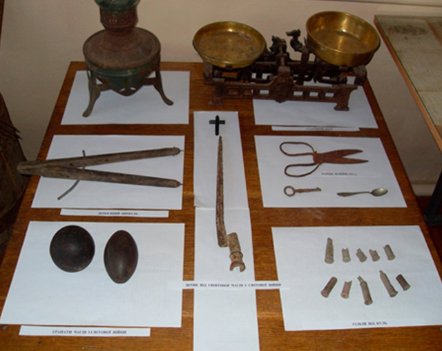 Музей має численну колекцію археологічних знахідок, документів, фотографій, побутових речей, етнографічних пам’яток. Представлено також предмети матеріальної та духовної культури, знаряддя праці, предмети побуту, комплекти жіночого і чоловічого одягу, фотографії учасників Першої та Другої cвітових воєн, пам’ятного знака воїнам-односельцям, показано також становлення й розвиток освіти, культури, охорони здоров’я села. Цінним експонатом є дерев’яна ікона кінця ХVІІІ століття. Окрасою музею є макет звичайної селянської хати, критої очеретом.