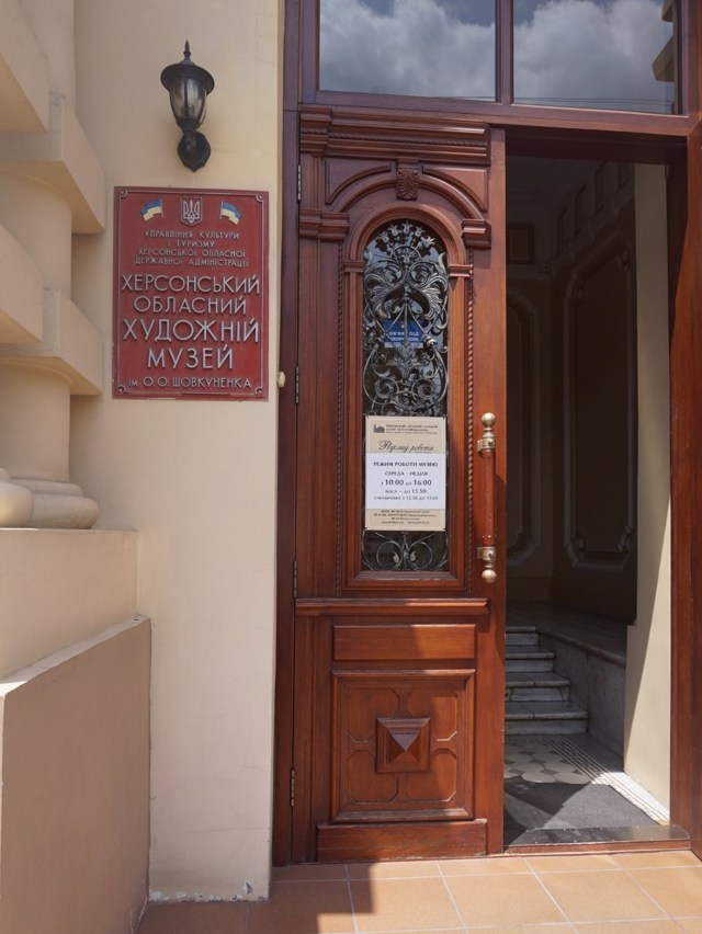 Від початку російсько-української війни в 2022 році будівля Херсонського художнього музею, що є пам’яткою архітектури, неодноразово потрапляла під обстріли російської армії.