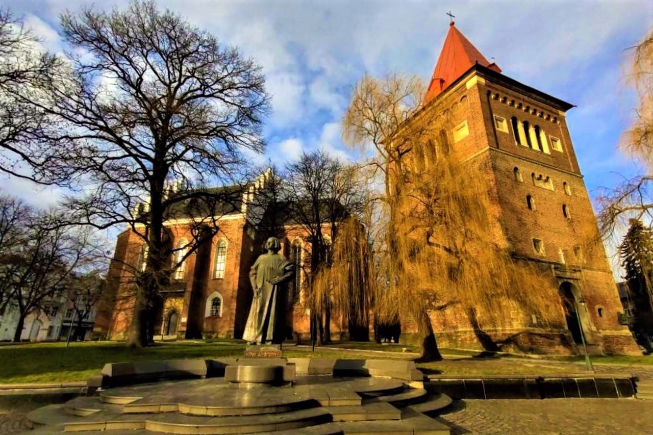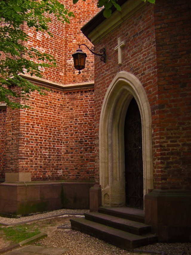 Мармурове оздоблення дверей з двома мечами нагадує про жителів міста, які загинули у Грюнвальдській битві.