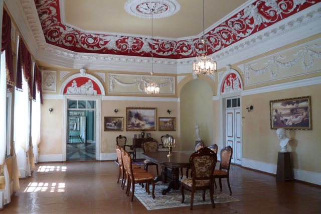 Для огляду доступна анфілада парадних залів: Велика (Червона), Кругла (Блакитна), Римська (Зелена) та інші. Унікальний розпис Японського кабінету в орієнтальному стилі виконано невідомим автором (за легендою – Михайлом Врубелем).