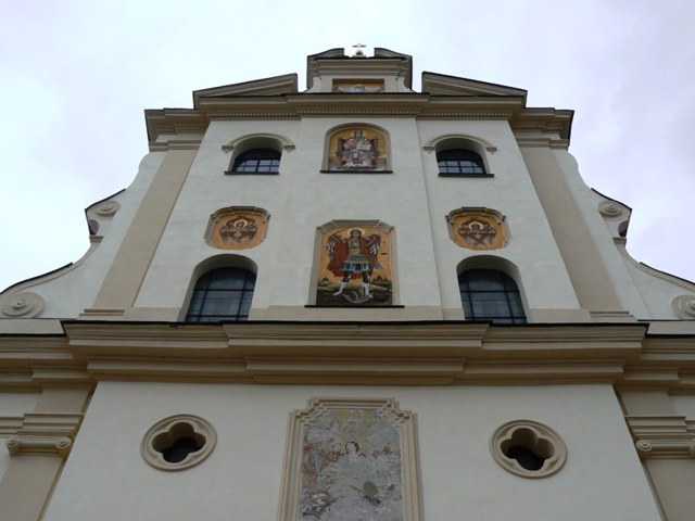 Католицький храм у стилі раннього бароко споруджено на місці дерев'яного костелу Діви Марії. Монастир оточений високими оборонними мурами з круглою кутовою вежею, що входила до системи міських укріплень. У XVIII сторіччі комплекс було доповнено монастирськими келіями.